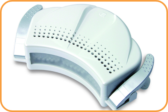 歯にやさしく、効果的にホワイトニングを行うために、お口に直接装着するタイプの照射機。